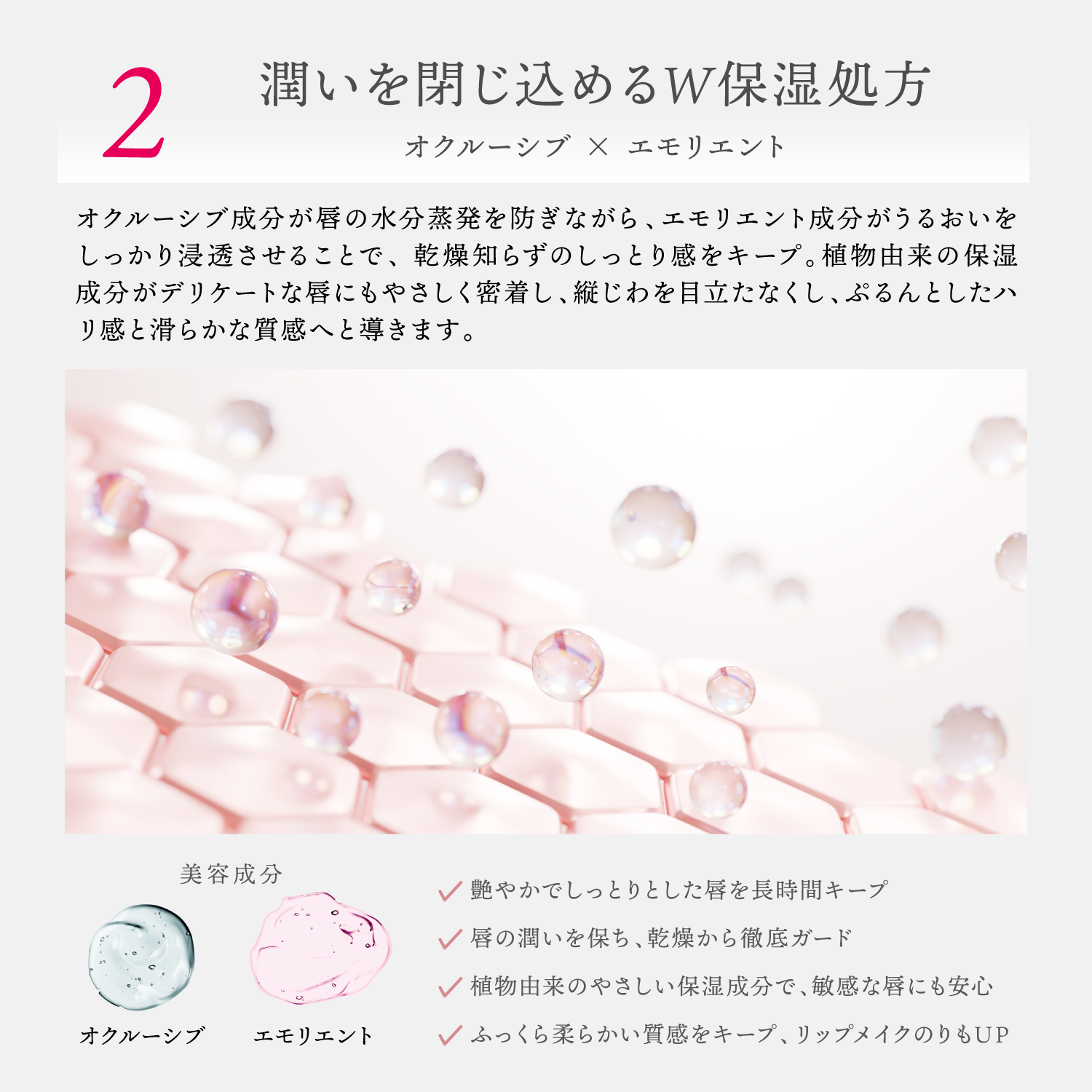 唇の表面にすぐ潤いを感じ、夜寝る前に使うと朝にはちょっと乾いてますが翌朝もプルプル。保湿ケアとしても優秀。前よりこまめに塗る必要もなくなりました。香りもほんのりで使いやすいです!