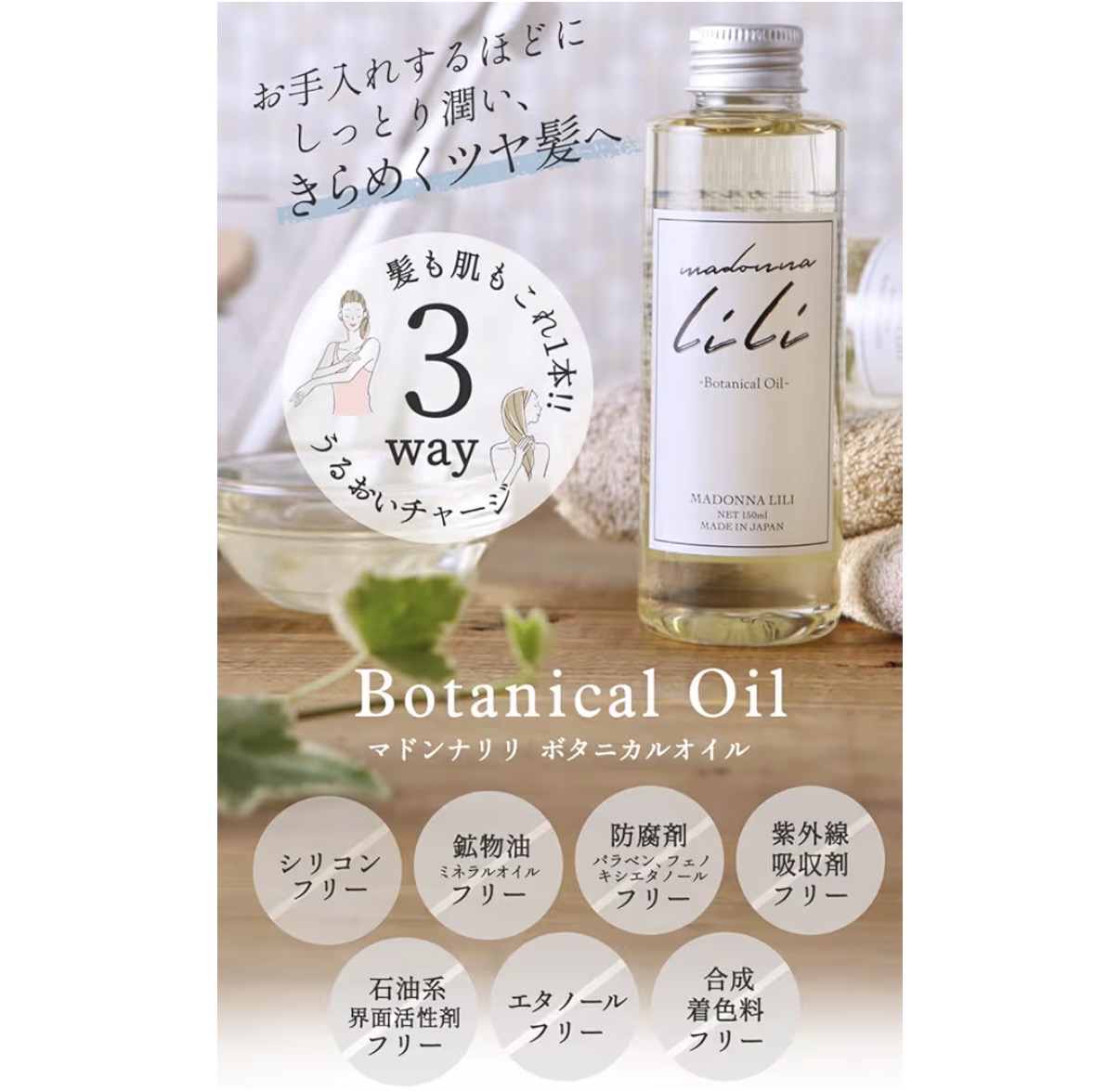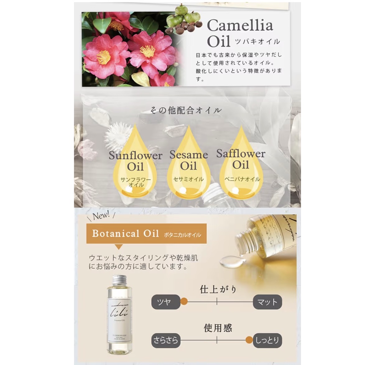 広がりやすい髪質ですが、このオイルを使うとまとまりが出て落ち着きます。ドライヤー前に使うのがおすすめ。